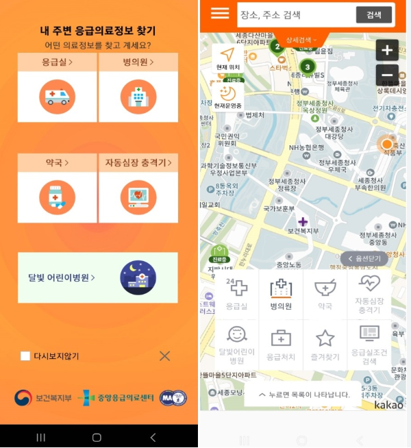 보건복지부·중앙응급의료센터 등 공공 데이터와 연계해 문 여는 병의원·약국 정보와 응급실 병상 상황을 실시간으로 조회할 수