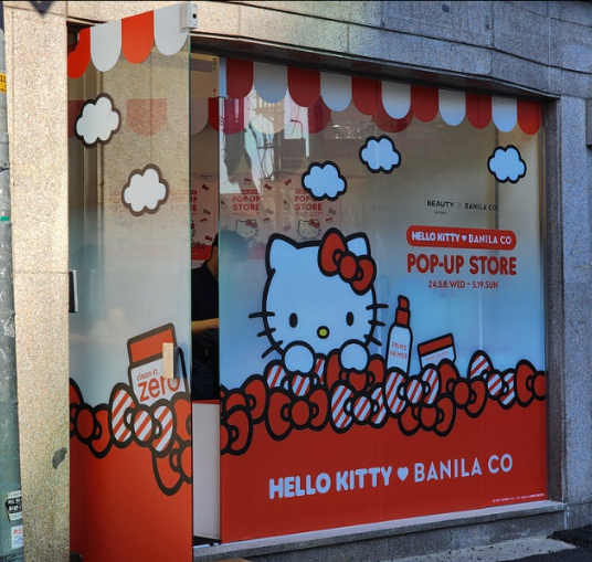 또 다른 주목할 만한 사례는 바닐라코 × 헬로키티 팝업스토어로, 한정판 굿즈와 포토존 중심의 콘텐츠로 SNS에서 폭발적인 인기를 얻었다.