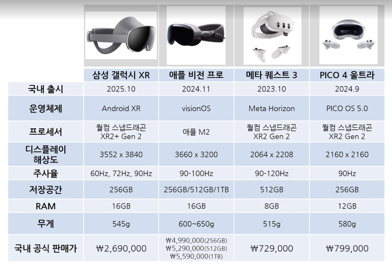 🥊 5. 경쟁사 제품과의 성능·가격 비교 — Vision Pro·Meta(Quest) 등과의 위치