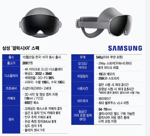배터리·무게·착용감 관련 세부 수치는 발표문에서 일부만 공개되었으나, 삼성은 장시간 사용성을 고려한 설계와 액세서리(전용 컨트롤러·케이스 등) 생태계도 함께 준비했습니다.