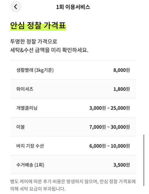 또한 초과 세탁물이나 추가 배송 시 별도 요금이 발생할 수 있으니