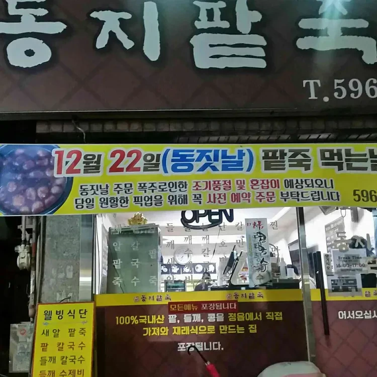 - 메뉴: 새알 팥죽 / 팥칼국수 등이 대표적.