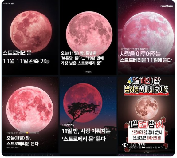일부 매체나 SNS에서는 11월의 보름달을 ‘스트로베리문’처럼 표현하기도 하지만,