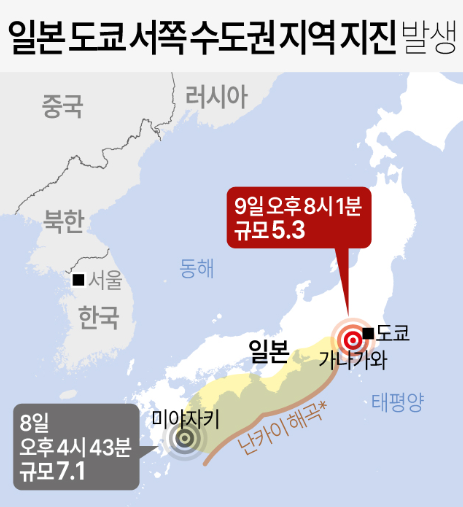 최근 들어 일본 전역에서 중·대규모 지진 횟수가 증가하며, 국민적 불안이 높아지고 있다.