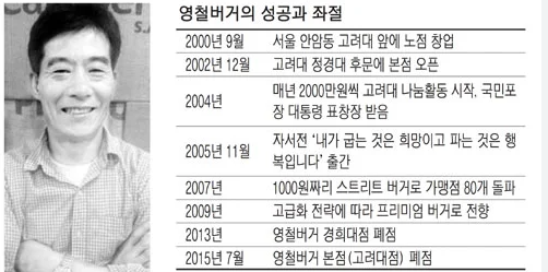하지만 승승장구하던 영철버거에게도 시련은 찾아왔는데, 무리한 프랜차이즈 사업 확장과 재료비 상승 등 경영난이 겹치면서 2015년 결국 본점이 문을 닫는 위기를 맞이했습니다.