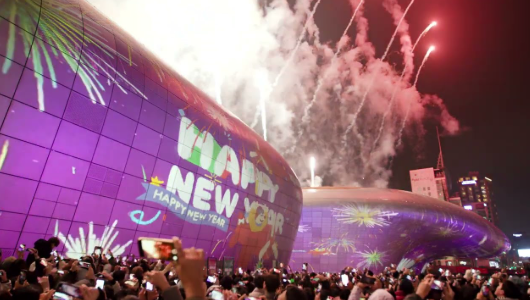 - 주요 행사: 초대형 미디어 파사드 쇼, 레이저 퍼포먼스, 카운트다운 점등