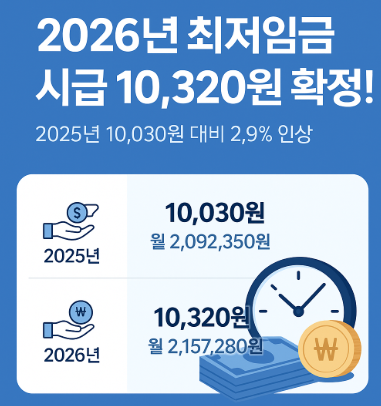 이는 2025년의 10,030원보다 약 2.9%인 290원 인상된 금액으로, 이제는 명실상부한 '시급 1만 원 시대'가 우리 삶의 표준이 되었습니다.