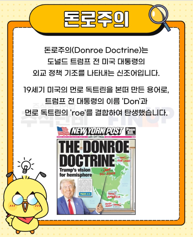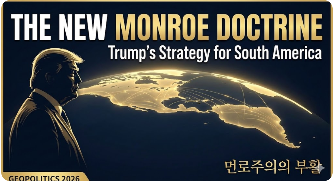 최근 국제정치 학계와 언론에서 회자되는 **'돈로주의(Donroe Doctrine)'**는 도널드(Donald)와 먼로(Monroe)의 이름을 합친 신조어로, 트럼프만의 독특한 서반구 지배 전략을 의미합니다.