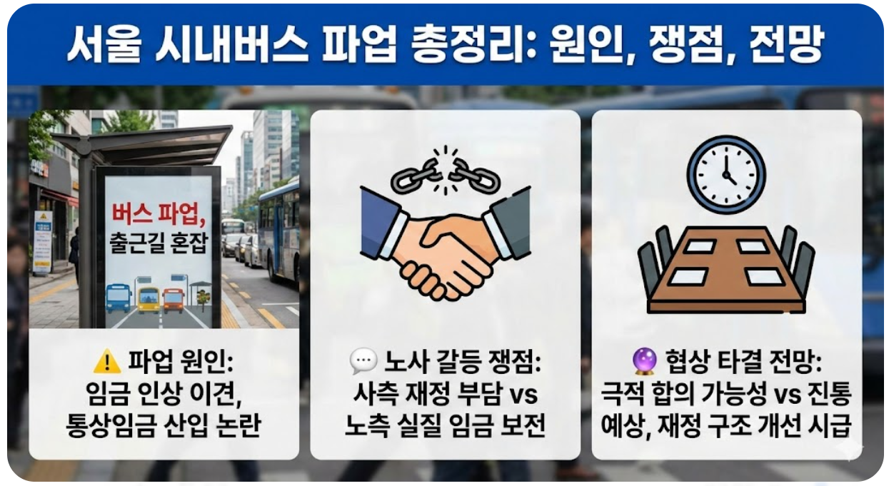🚌 1. 서울 시내버스 파업의 주된 원인과 현재 상황