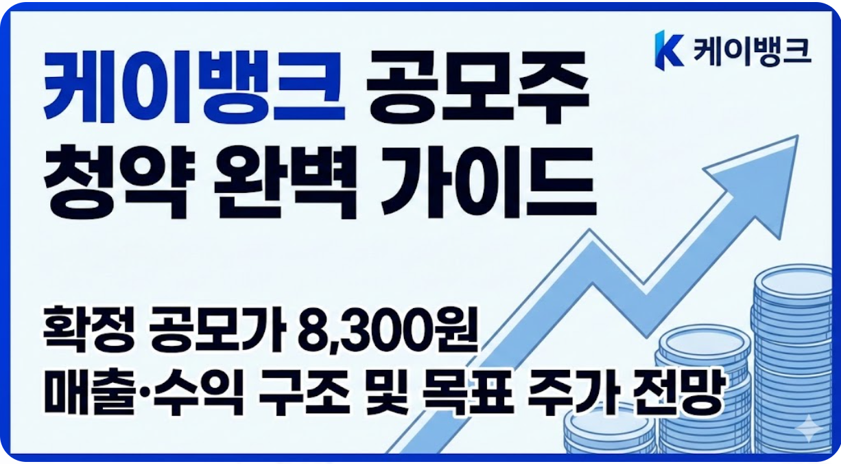 증권가에서는 상장 직후 오버행(대량 대기 물량) 우려가 일부 존재하지만, 낮은 공모가 덕분에 하방 경직성이 강할 것으로 보고 있습니다. 중장기적으로는 SME 대출 시장 점유율 확대와 인공지능(AI) 기반의 금융 서비스 고도화가 주가 상승의 촉매제 역할을 할 것으로 기대됩니다. 만약 케이뱅크가 상장 후 자본 확충 효과를 통해 공격적인 대출 영업에 성공한다면 목표 주가는 공모가 대비 30~50% 이상의 상승도 충분히 가능할 전망입니다.