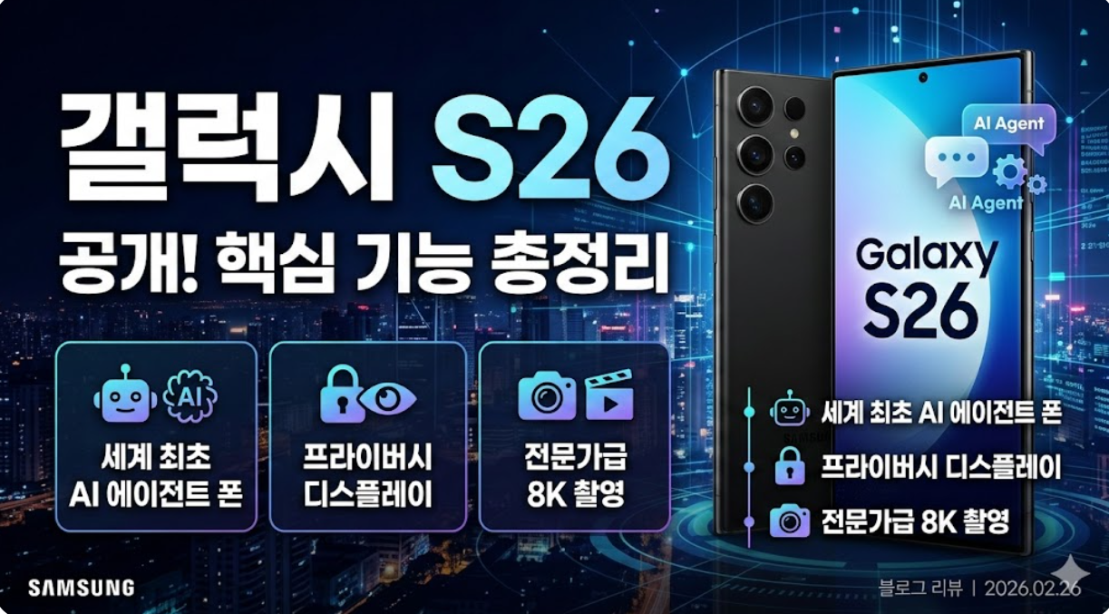삼성전자가 2026년 2월 26일 미국 샌프란시스코에서 베일을 벗은 갤럭시 S26 시리즈는 단순한 기기를 넘어 '세계 최초의 AI 에이전트 폰'이라는 새로운 지평을 열었습니다.