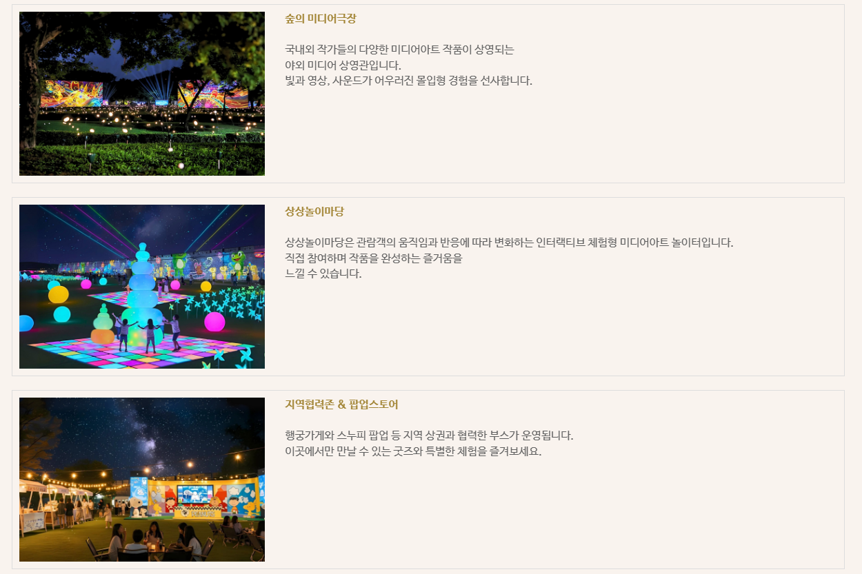 - 행사장 내 음료, 간식 부스 등이 운영될 수 있으나 야간 행사임을 고려해 방수팩, 손전등 등도 챙기면 유용합니다.