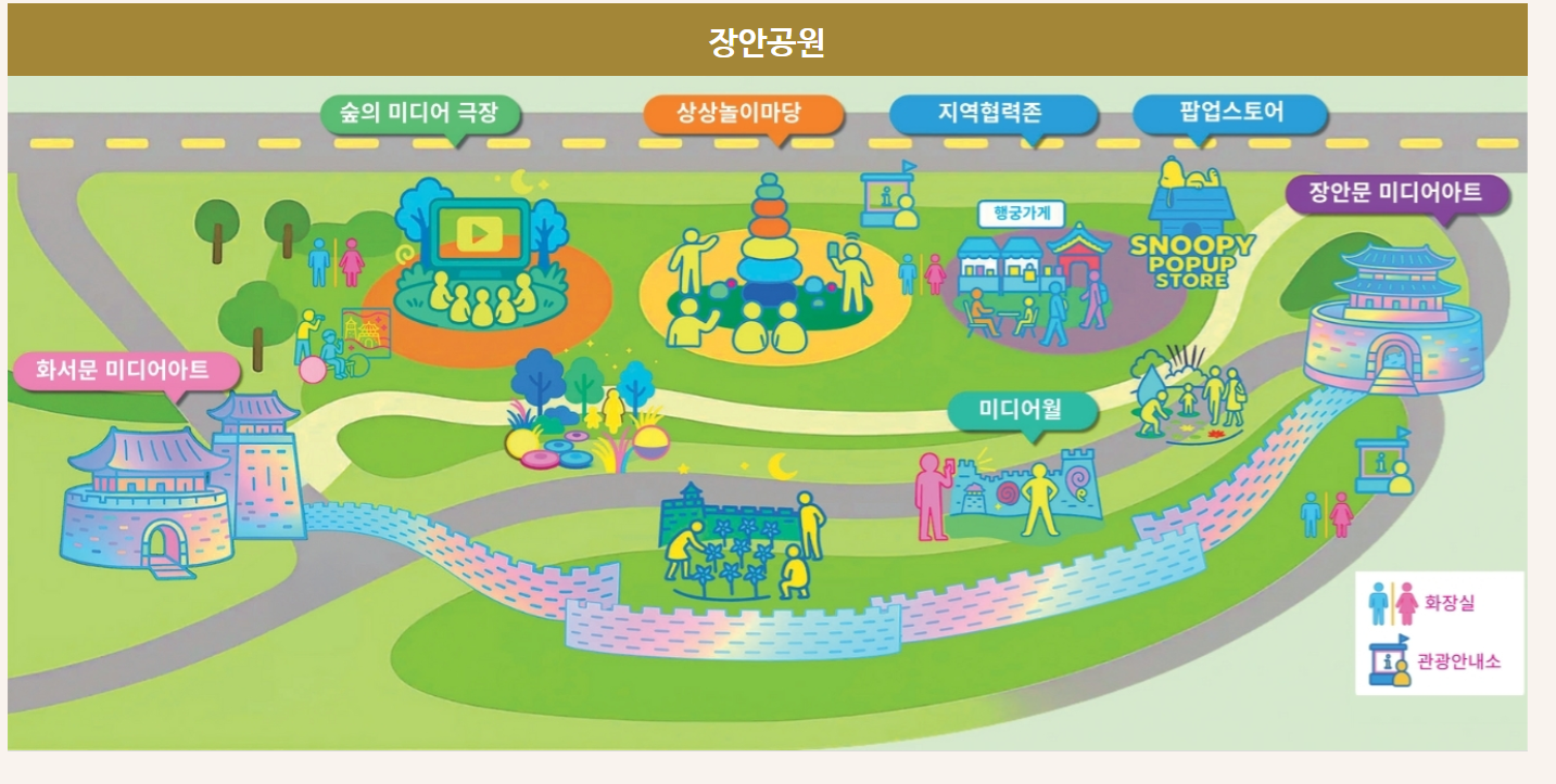 - 화서문 무대는 성곽 구간 약 200m 구역을 활용하므로, 도보 이동이 동반됩니다.